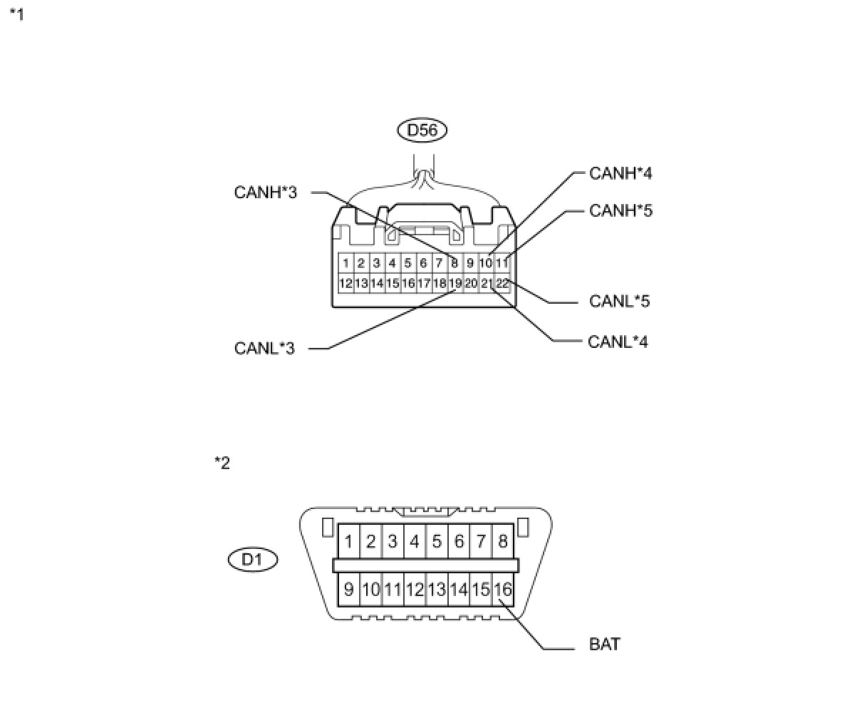 There may be a short circuit between the CAN bus main wire and +B when no resistance exists between terminals 6 (CANH) and 16 (BAT) or 14 (CANL) and 16 (BAT) of the DLC3.