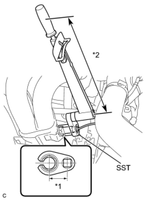 - The "with SST" torque value is effective when using a torque wrench with a fulcrum length of 300 mm (11.81 in.) Service Precautions.