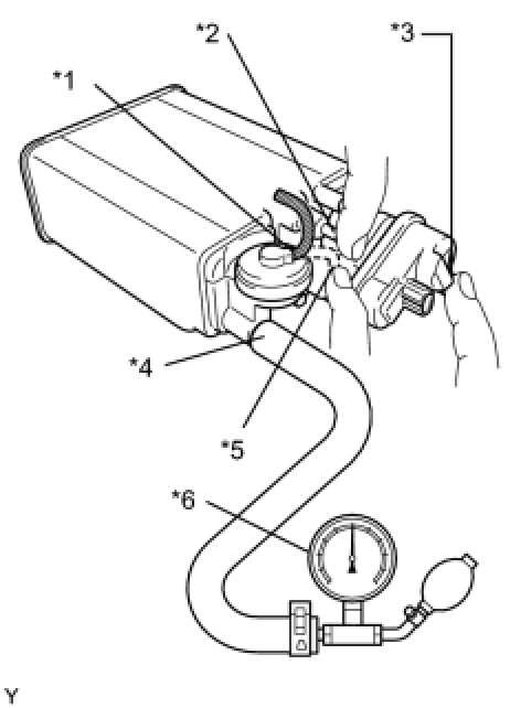 (2) Connect a pressure gauge to the vent port of the charcoal canister.