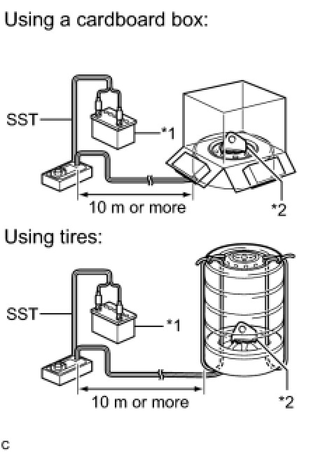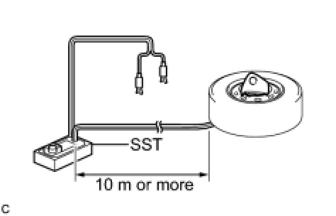 (2) Move SST at least 10 m (32.8 ft.) away from the airbag tied down to the wheel.