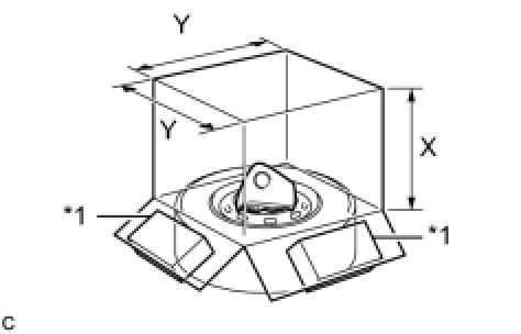 - When dimension Y of the cardboard box exceeds the diameter of the wheel and tire to which the steering pad is tied, X should be the following size.