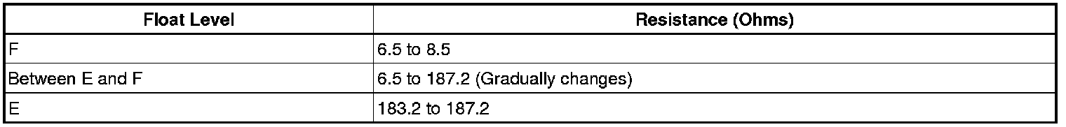 If the result is not as specified, replace the fuel sender gauge assembly.