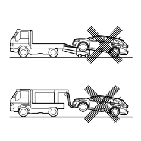(c) The following towing methods shown below are dangerous and can damage the vehicle, so do not use them.