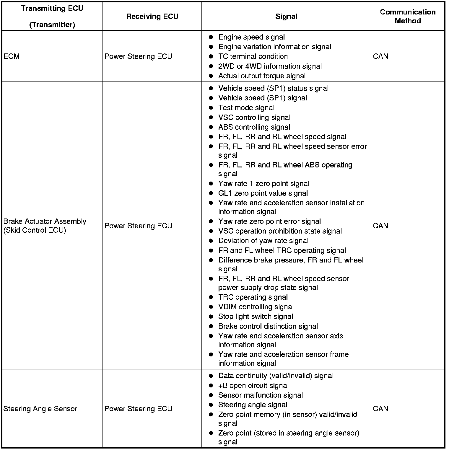 (a) Power steering ECU: