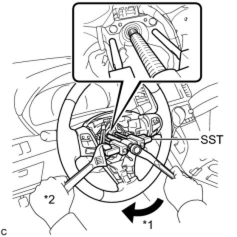 - Do not rotate the spiral cable with the battery connected and the engine switch on (IG).
