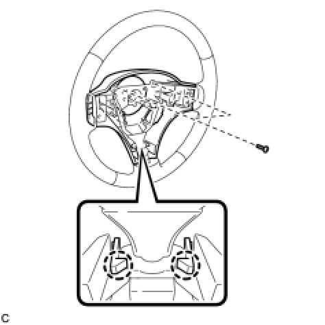 (a) Remove the 2 steering pad attaching screws from the lower steering wheel boss cover.