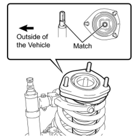 NOTICE: Fit the recessed part of the rear lower coil spring insulator into the recession on the shock absorber assembly.