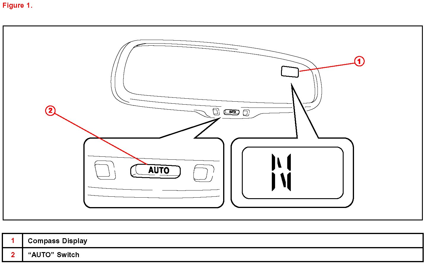 1. Cycle the ignition switch to the "IG-ON" position and push and hold the "AUTO" switch for 6 seconds until the zone number appears on the compass display.