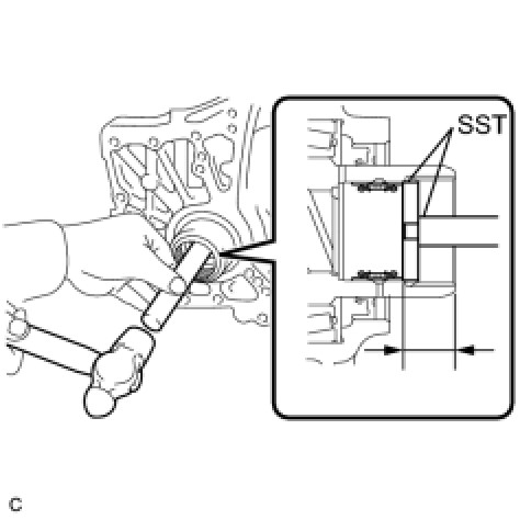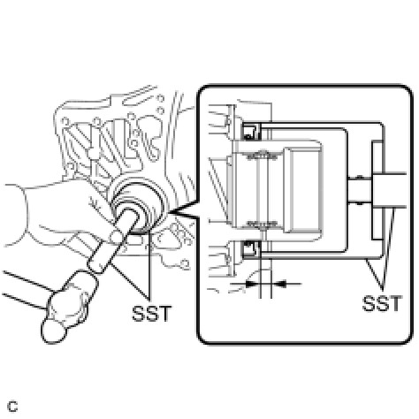 (2) Using SST and a hammer, tap in the front transaxle case oil seal.