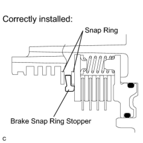 NOTICE: If the brake snap ring stopper cannot be turned by hand, the brake snap ring stopper may have been installed upside down, or the snap ring may not have been completely located in the groove on the oil pump. Remove and reinstall the snap ring and the brake snap ring stopper.
