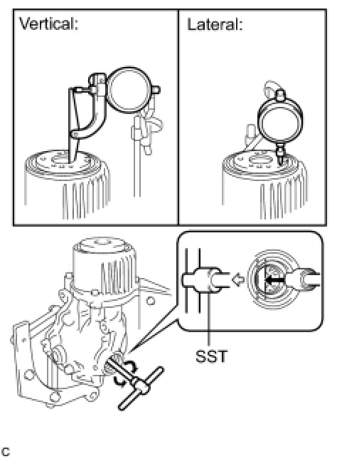(b) Using SST, rotate the electro magnetic control coupling sub-assembly forward and backward, and measure the vertical runout.