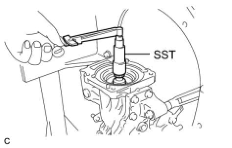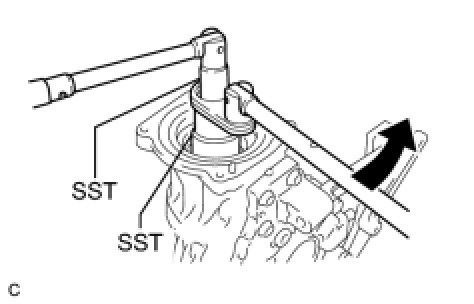 (b) Using SST, hold the differential drive pinion in place and remove the rear drive pinion nut from the differential drive pinion.