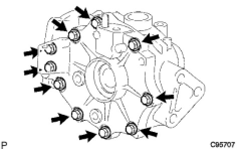 (a) Remove the 10 bolts from the rear differential carrier assembly.
