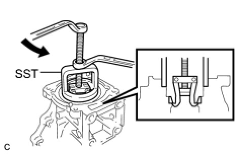 (a) Using SST, remove the rear differential case bearing (RH side inner race) from the rear differential case sub-assembly.