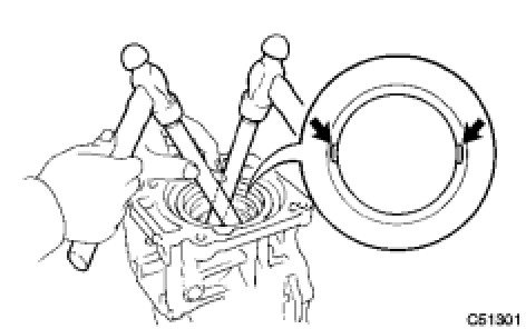 NOTICE: Set the brass bar on the ribbed part of the differential side bearing retainer.
