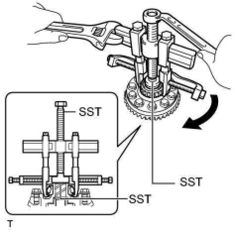 (b) Using SST, hold the drive pinion in place.