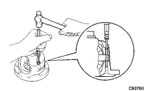 (e) Using a chisel and a hammer, stake the outside of the differential case pin hole.