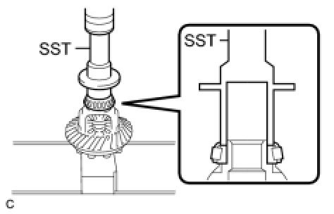 (a) Using SST and a press, install the rear differential case bearing (LH side inner race) to the rear differential case sub-assembly.