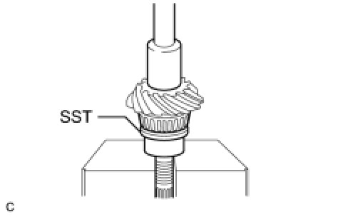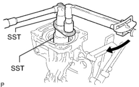 (b) Install the new rear drive pinion nut to the differential drive pinion. Using SST, tighten the new rear drive pinion nut while confirming the preload.