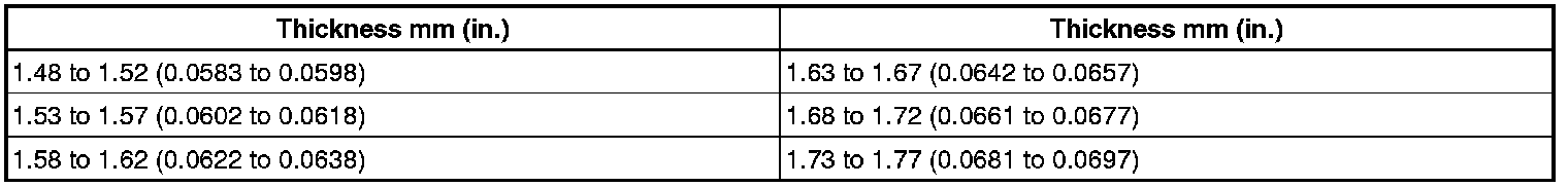 HINT: Refer to the table below and select 2 rear No. 1 differential side gear thrust washers which ensure that the backlash is within the specification.