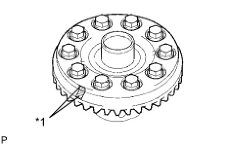 (e) Align the matchmarks on the rear differential case and differential ring gear, and install the differential ring gear.