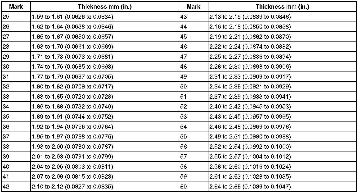 - When the backlash is smaller than the specified value, select a thick rear differential side gear shaft plate washer for the RH side and thin rear differential side gear shaft plate washer for the LH side.