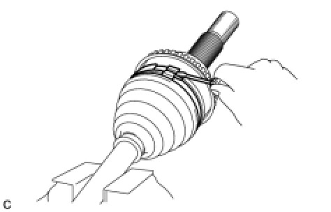 (a) Using pliers, remove the rear drive shaft outboard joint boot clamp as shown in the illustration.