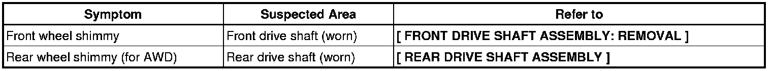 DRIVE SHAFT / PROPELLER SHAFT: DRIVE SHAFT SYSTEM: PROBLEM SYMPTOMS TABLE