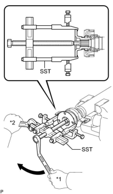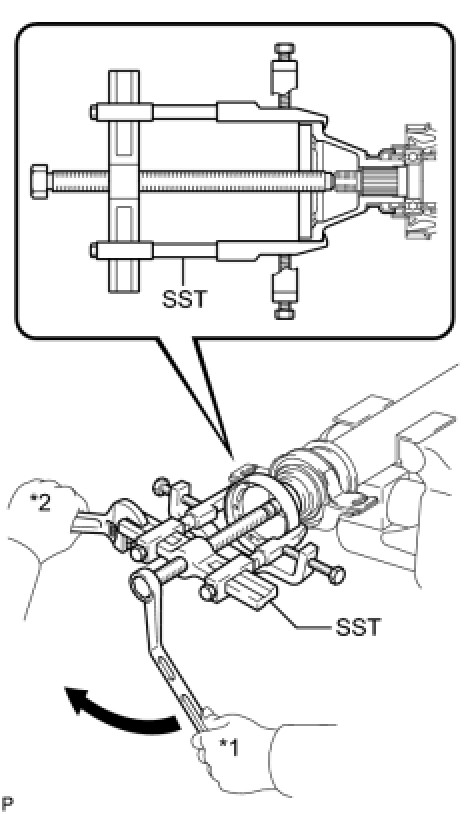 (b) Using SST to hold the universal joint flange, remove the nut and washer