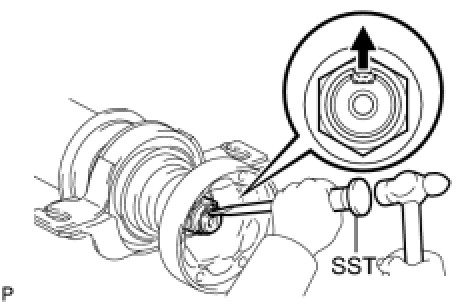(b) Using SST to hold the universal joint flange, remove the nut and washer.