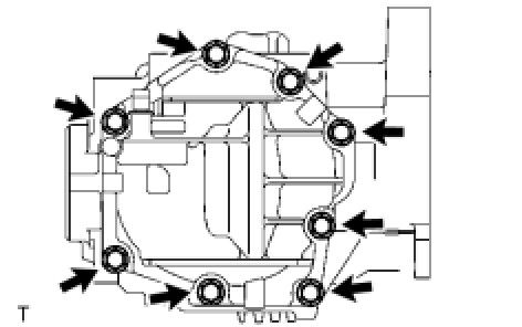 (a) Using a brass bar and a hammer, tap the 2 positions shown in the illustration on the transfer driven pinion rear bearing (outer race) to remove it from the transfer case.