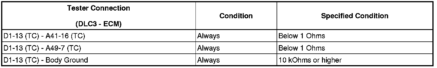 HINT: When each warning light remains blinking, a short to ground in the wiring of terminal TC of the DLC3 or an internal short to ground in each ECU is suspected.