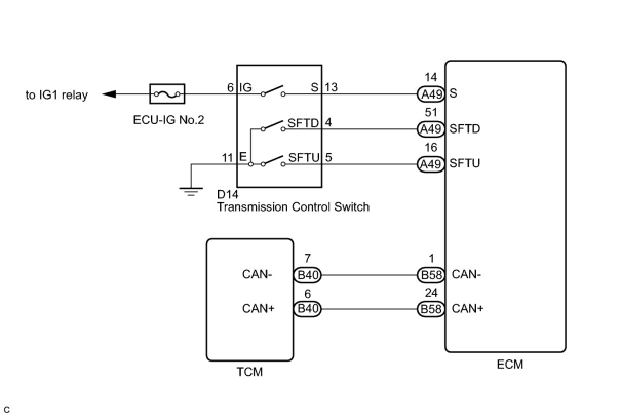 4. CHECK HARNESS AND CONNECTOR (TRANSMISSION CONTROL SWITCH - ECM)