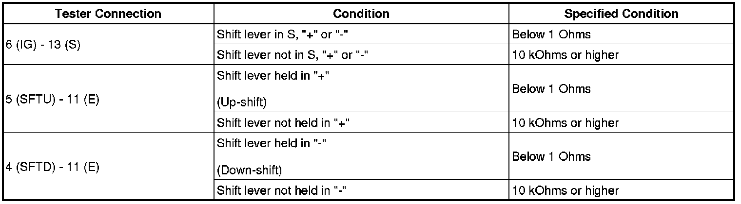 (a) Measure the resistance between each terminal of the transmission control switch when the shift lever is moved to each position.