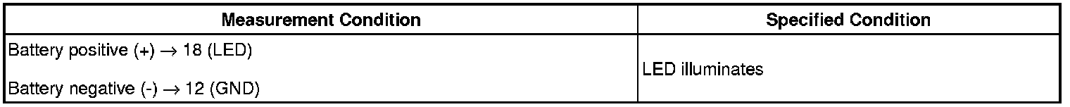 (1) Apply battery voltage to the power window regulator master switch assembly and check that the LED illuminates.