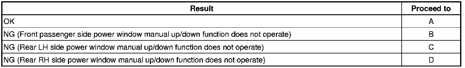 (a) Check that the manual up/down function using power window regulator switch assembly can operate the front passenger side, rear LH side rear RH side power windows.