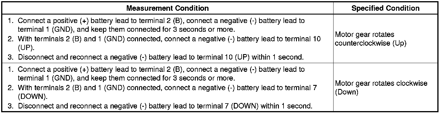 (b) Connect a ground lead to connector terminals 1 (GND) and 7 (DOWN) or 10 (UP).