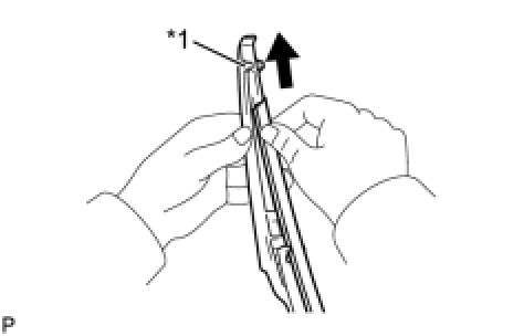 (a) Lift and pull the end of the wiper rubber protrusion from the blade stopper as shown in the illustration.