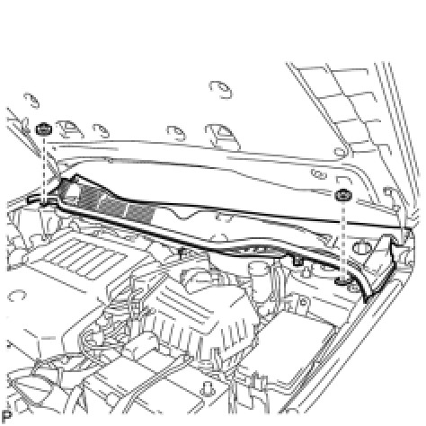 (b) Disengage the 13 claws and pull out the cowl top ventilator louver sub-assembly as shown in the illustration.