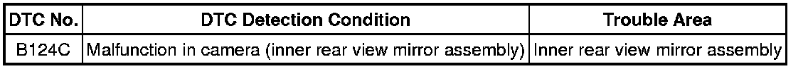 The DTC is stored when the main body ECU (driver side junction block assembly) detects malfunctions in the camera (inner rear view mirror assembly).