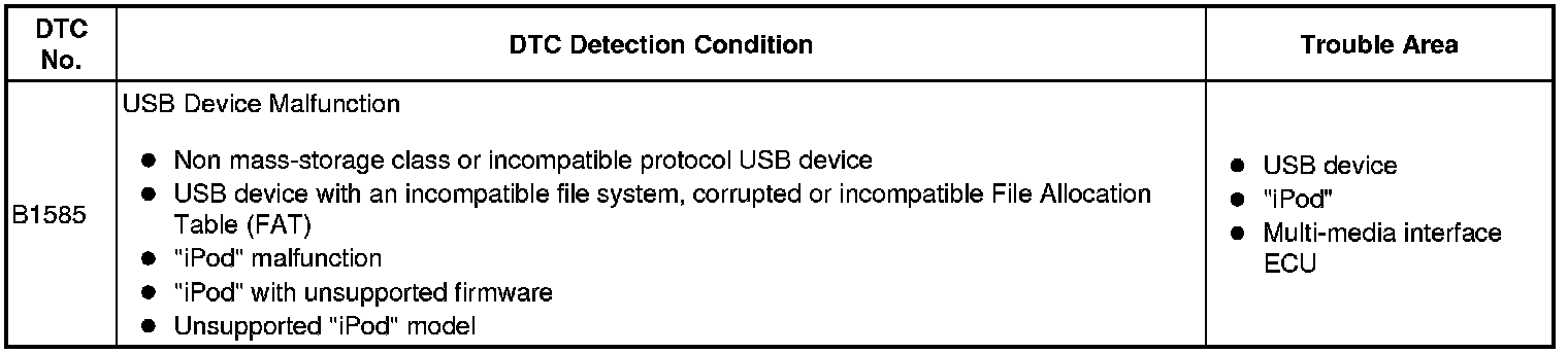 NAVIGATION / MULTI INFO DISPLAY: NAVIGATION SYSTEM: B1585: USB Media Malfunction
