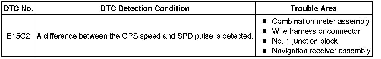 The navigation receiver assembly stores this DTC when the difference between the speed information that the GPS antenna receives and the SPD pulse received from the combination meter assembly becomes large.