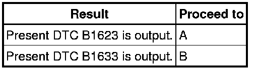 Codes other than present DTC B1623 and B1633 may be output at this time, but they are not related to this check.