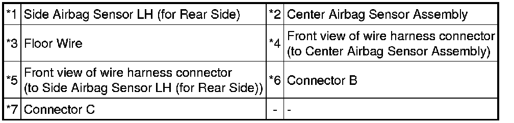 (c) Check that the connectors are properly connected to the center airbag sensor assembly, side airbag sensor LH (for rear side) and rear airbag sensor LH.