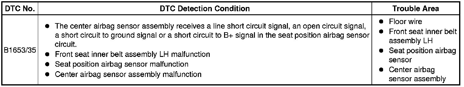DTC B1653/35 is recorded when a malfunction is detected in the seat position airbag sensor circuit.
