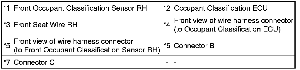 The front occupant classification sensor RH circuit consists of the occupant classification ECU and front occupant classification sensor RH.
