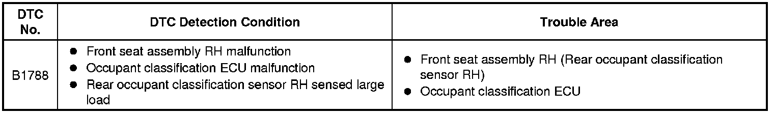 DTC B1788 is output when the occupant classification ECU receives a collision detection signal sent by the rear occupant classification sensor RH if an accident occurs.