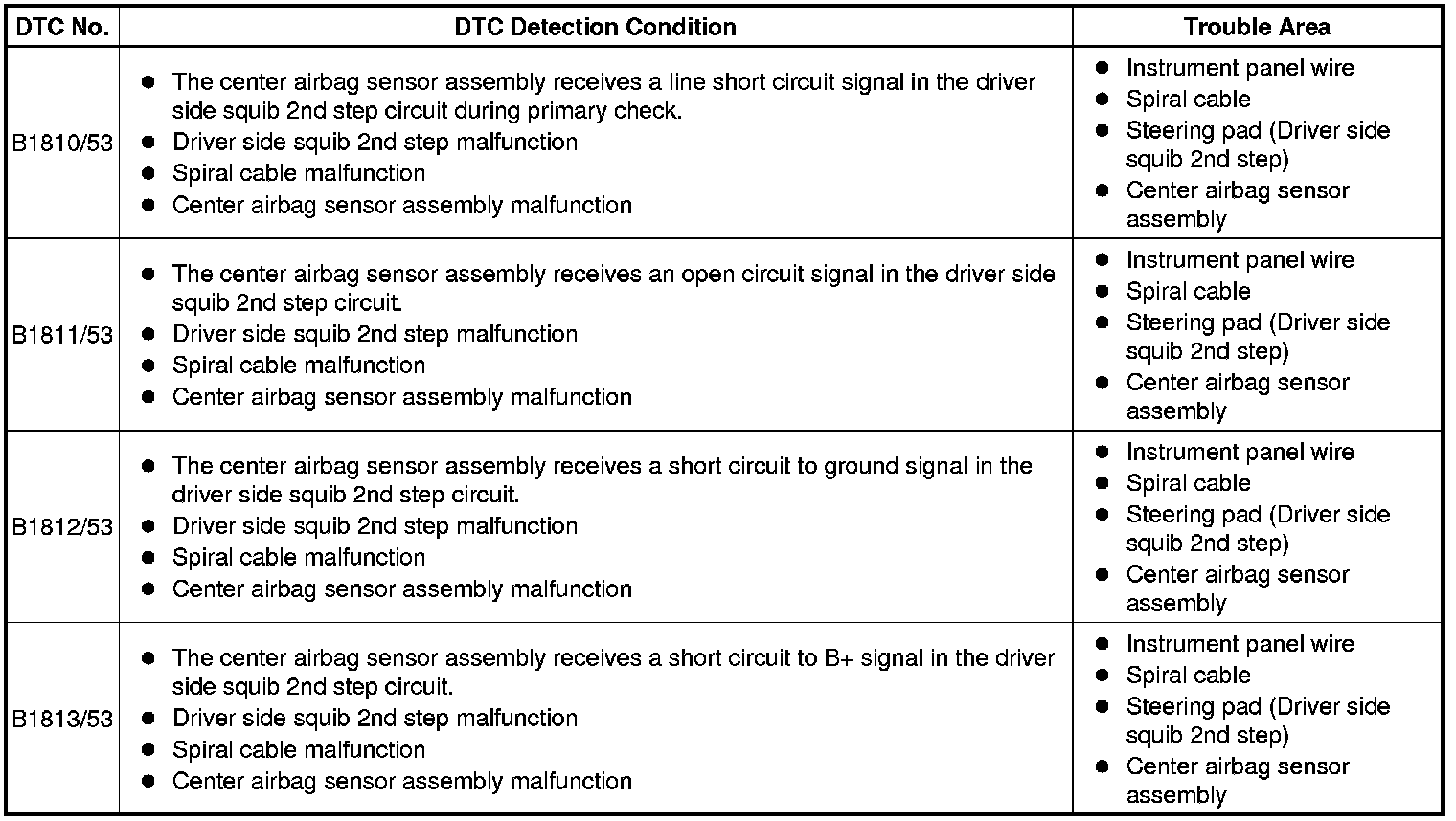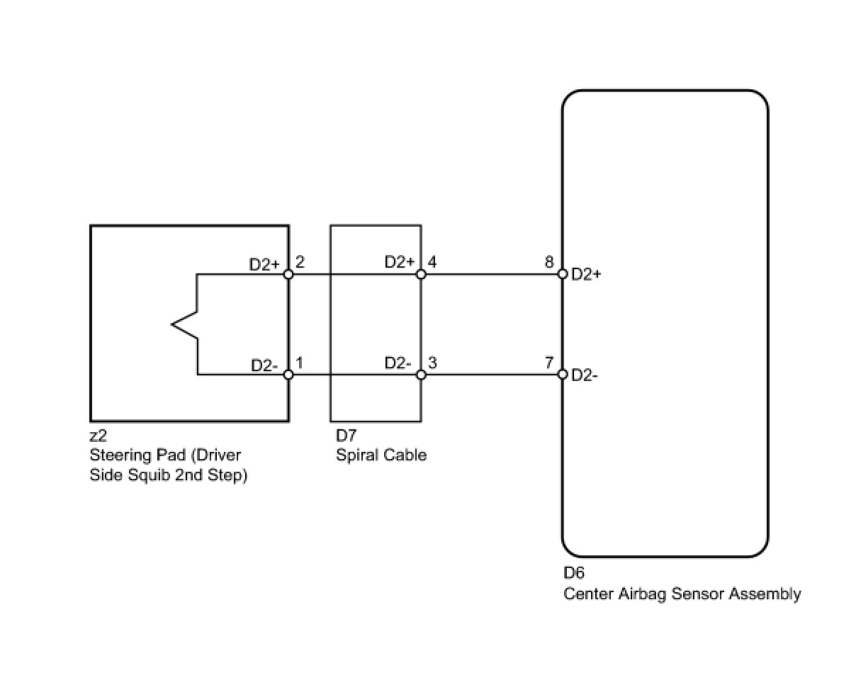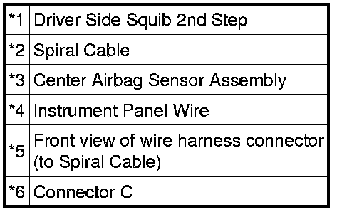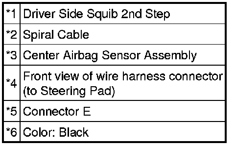 * The driver side squib 2nd step circuit consists of the center airbag sensor assembly, spiral cable and steering pad.
