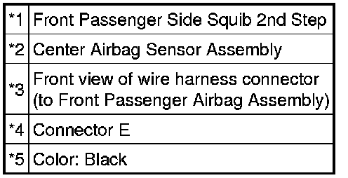 The front passenger side squib 2nd step circuit consists of the center airbag sensor assembly and front passenger airbag assembly.