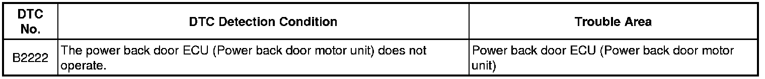 * If DTC B2222 is stored, the power back door system will be turned off and the back door will be switched to manual operation mode (not electrically controlled).